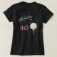 Cette chemise fait un cadeau mignon pour n'importe quelle femme jouante au golf qui tourne les grands 40. Elle comporte votre texte fait sur commande stylisé dans blanc et rose, qui indique FABULEUX à 40. Sur le côté est un tee de golf rose s'assortir avec une image de boule de golf. Le texte et l'image sont placés sur un arrière - plan d'image de confettis d'or, qui ajoute l'intérêt et un peu de bling scintillant.