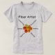 Glasbälle in Gelb und Orange sind das zentrale Bild. Titel oben liest "Fiber Artist" Wortrochen reichen von der Mitte: Crochetting, Stickerei, Stricken, Weben, Quilting und Nähen.