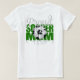 T-shirt avec Proud Soccer Maman sur le dos en lettres vertes; personnalisé sur la poche avant avec le nom de la mère ou de l'enfant qui commence par la lettre "E".