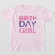 La chemise personnalisée "Fille d'anniversaire" présente un design de texte moderne dans les tons rose et violet. Personnalisez le texte avec le numéro d'âge de votre enfant au dos. Les couleurs peuvent toutes être customisées.