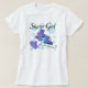 Notre T-shirts de conception de fille de patineur, tasses, sacs, cartes, coussins, horloges murales, souvenirs, sweat - shirts à capuche, et d'autres articles de patinage de thème comporte une paire de patins de bleu et de lavande et des mitaines sur une ficelle entourée par un bon nombre de flocons de neige hivernaux et de texte qui lit la fille de patineur !
