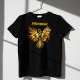 Phoenix doré à l'allure cool avec ailes flamboyantes et plumes de queue. Customisez le texte pour lire tout ce que vous voulez ou même supprimer le champ de texte pour aucun texte sur la chemise.