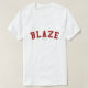 Flamme ! Votre nom est-il flamme ? Ou avez-vous un mari, un ami, un membre de la famille masculin ou un mâle Blaze appelée par ami ? Si oui, cette chemise de "bannière" est exactement le cadeau que vous recherchez ! Les caractéristiques de conception "flambent" dans le lettrage rouge arqué à travers le coffre dans la police classique d'université.