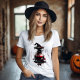 Wagen Sie es, die mysteriöse Eleganz mit diesem mutigen Design-T-Shirt zu wagen! Im Zentrum des Druckes befindet sich eine Flasche Bluttrank, reich an faszinierenden Details. Der Kontrast zwischen dem roten Blut im Trank und den dunklen Nuancen im Hut schafft eine Ästhetik, die sowohl elegant als auch übernatürlich ist.