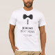Ces t-shirts amusants sont conçus comme des faveurs ou des cadeaux pour votre meilleur homme. Le t-shirt est blanc et présente l'image d'une cravate d'arc noir et trois boutons. Le texte dit Best Man, et a un endroit pour entrer son nom ainsi que le nom du couple mariage et la date du mariage. Grand ajout à un sac de bagage mariage.