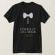 Ces t-shirts amusants sont conçus comme des faveurs ou des cadeaux pour le père de la mariée. Le t-shirt est noir et présente l'image d'une cravate arc blanche et trois boutons. Le texte dit Père de la Mariée, et a une place pour le nom du couple mariage et la date mariage. Grand ajout à un sac de bagage mariage.