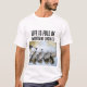 This funny T-shirt features a photograph of an array of golf clubs and golf balls and the words "Life is full of important choices" above it. Photo credit: Cristina Anne Costello, 2020.