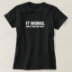 A classic programmer moment: the code works… but nobody knows why. This bold distressed “It Works. Don’t Ask Me Why.” design is perfect for developers, software engineers, and coders who’ve experienced that mysterious debugging victory.