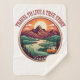 Authentisches Abzeichen Tee: Umgeben Sie wahre Reisen - Retro-Gebirge + Camper-van Sonnenuntergang Design, druckfertig für T-Shirts, Holodies und Tasse. Hell/dunkel Varianten + optionale Personalisierung.