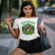 Célébrez le Jour des terres dans le style avec ce t-shirt unique et attrayant avec des créatures d'imaginaire protégeant la forêt Un homme tenant un pistolet, se tenant protectivement près de deux tortues dans un cadre naturel. se rassemblant pour protéger une forêt luxuriante avec de grands arbres majestueux.