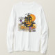 Un adorable couple de gnomes se tient devant leur éffrayante maison hantée qui a des lances de jack tout autour. Un fantôme plane autour de l'arbre. Les chauves-souris volent près de la pleine lune d'Halloween orange. Tous les modèles sont disponibles en tailles pour adapter le bébé à l'adulte.