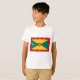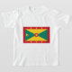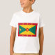 Drapeau de Grenade. Le drapeau national de la Grenade a été adopté à l'indépendance du Royaume-Uni, le 7 février 1974. Les six étoiles de la frontière rouge représentent les six paroisses du pays, avec l'étoile moyenne, encerclée par un disque rouge, qui représente la capitale, Saint George's. Le symbole dans le treuil représente une gousse de muscade, l'une des principales cultures de Grenade. Il représente également un lien vers l'ancien nom de Grenade, qui était "l'île aux épices". La combinaison de couleurs rouge, or et vert, dans le drapeau est représentative de l'identité africaine du pays. Le rouge signifie courage et vitalité, le jaune, sagesse et chaleur, le vert, végétation et agriculture.