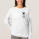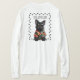 Un schnauzer miniature noir mignon sort d'une fausse poche sur le devant de ce t-shirt à manches longues et un design complet sur le dos est entouré d'empreintes de pattes blancs, amusant pour votre entreprise et vos employés.