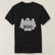 Cette chemise pour hommes noirs présente un fantôme de style bande dessinée avec le mot Boo dans une police oculaire. Une chemise ludique pour les fêtes ou pour porter pour prendre le tour des enfants ou traiter sur Halloween.