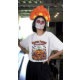 Moderne et mignon "Flower Power Halloween" Halloween design tee - shirt graphique avec texte en orange et blanc avec un accent fantôme mignon. Disponible en plusieurs styles et tailles pour toute la famille.