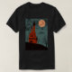 Style graphique moderne amusant Halloween T-Shirt avec maison hantée éffrayante, chauves-souris, araignées dans les webs, pleine lune et leering jack-o-lantern pour ajouter à l'effervescence festive de tour ou de traiter les célébrations. La typographie décorative peut être facilement customisée ou supprimée des deux côtés. Un design unisexe cool à porter pendant les célébrations d'Halloween.