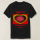 Un T-shirt rose avec un coeur de Valentines rouge, noir et jaune avec un cadre rouge autour. C'est lumineux et coloré que sur un T-SHIRT rose.