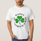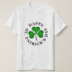 Un T-Shirt avec un design de trèfle shamrock vert et un noir "HAPPY ST. PATRICK'S DAY" texte autour.