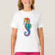 Artistiquement dessiné, lumineux, arc-en-ciel, cheval de mer polygonale sur arrière - plan blanc. Un tatouage brillant.