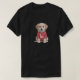 This charming illustration features an adorable puppy (looks like a Terrier mix!) sitting patiently, wearing a red t-shirt that proudly states "I ❤️ DAD" surrounded by sweet paw prints. It’s the perfect way for your furry best friend to show his love!