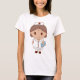 Mignonne infirmière de bande dessinée avec cheveux bruns et un doux sourire. Elle porte une tenue d'infirmière blanche et un casquette et porte un dossier médical bleu sous un bras.