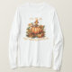 Un épouvantail se sent comme à la maison dans un coin citrouille avec des tournesols, des fraises d'hiver et des pinecones.