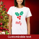 T-shirt Joyeuses Vacances Rouge Blanc Vert Holly Nom perso