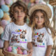 Un Joyeux Tee - shirt De Pâques Coloré Conçu Avec Deux lapins Avec Panier D'Oeufs De Pâques