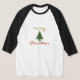 'Joyeux Noël' en fausse couleur or et écriture rouge avec illustration d'un arbre de Noël orné de billes et d'étoiles centre d'illustration.