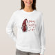 Chemise à manches longues rustique de style champêtre pour femmes avec "Joyeux Noël" et l'année en script de calligraphie rouge élégant. Ce design unique présente un gnome de dame dans son tenue de vacances en buffle rouge avec casquette et accentué par des étoiles de flocon de neige.