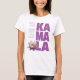 Kamala avec une fleur de lotus et le Sanskrit signifiant son nom avec la signification de la fleur de lotus. "Kamala est un mot sanskrit signifiant lotus. C'est l'un des noms de la déesse Lakshmi, qui apparaît du centre d'un lotus. La fleur de lotus est souvent associée aux thèmes de la création et de la renaissance. Sa capacité unique à émerger d'eaux boueuses, tout en demeurant pure et non contaminée, symbolise le processus cyclique de la naissance, de la croissance et du renouveau."