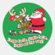 Adorable Santa Cartoon! Der Weihnachtsmann kittet den Red Nosed Rentier mit Jingle Bells für den Weihnachtsabend-Ausflug um die Welt! Wir haben ein paar Texte aus der beliebten Weihnachtsmelodie Jingle Bells hinzugefügt! Jingle! Erhältlich auf Aufklebern, die tolle kleinen Geschenke oder lustige Dekorationen für Ihre Geschenkpackungen machen. Von Scarebaby Design, gestützt durch die Zazzle-Garantie.
