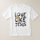 Christian T-Shirt cite une citation inspirante, "LOVE like JESUS." Il comporte des lettres en gras avec une croix d'or.