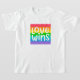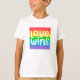 Cette oeuvre d'art présente un arc-en-ciel coloré avec les mots Love Wins.