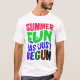 phrase ludique Summer Fun Has Just Begun en lettres colorées et audacieuses, parfait pour mettre l'ambiance pour une saison amusante à venir.