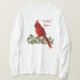 Chemise de la douille des femmes de saison des vacances de Noël longue comportant un oiseau sauvage cardinal rouge se reposant sur une branche des baies et du feuille de houx. Mots des textes lus "belle saison".
