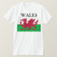 Un T-shirt américain d'habillement dans le blanc montrant le drapeau de Gallois avec le dragon et le mot "PAYS DE GALLES".