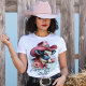 Ce mignon tee met en scène une légende de cow-girl laitière (vache portant un casquette de cow-girl rose) avec des mots pointus.