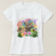 Ce décor de t-shirt plein de vie présente un majestueux léopard entouré d'un feuillage tropical luxuriant, dont des feuilles de monastères et des fleurs colorées comme l'hibiscus et la plumeria. L'arrière - plan est rehaussé par des éclaboussures de couleurs vives, créant un effet dynamique et artistique. Des touches d'or ornementales apportent une touche exotique et élégante, ce qui en fait un design parfait pour les amoureux de la nature et ceux qui apprécient les motifs audacieux et accrocheurs.
