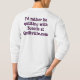 Longue chemise de douille d'en Provence avec "moi piquerais plutôt avec mignon chez Quiltville.com" sur le dos.