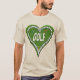 L'herbe verte et les balles de golf forment un coeur parsemé de tee - shirts, et les sans pièges épellent le nom du jeu, GOLF.