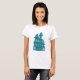 Une maison hantée éffrayante avec ses lumières allumées. Ce design semble vraiment efficace sur ce T-shirt féminin