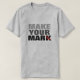 Die Wörter "Make Your Mark" in einem Farbverlauf (grau bis schwarz) sagen der Welt, dass man nicht verschwindet, ohne einen Beitrag zu leisten, der für Sie einzigartig ist. Es ermahnt auch jeden, der es liest, das Gleiche zu tun. Ein roter Blitz, eingebettet in das "K" in "MARK", betont Ihre Absicht, mutig zu leben und einen echten Unterschied zu machen. Kaufen Sie einen für sich selbst und für die Menschen, die Sie Liebe.