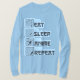 Drôle dessin animé sur le thème de manga illustrations d'un trait de manga et légende "mangez des dessins animés de sommeil" en anglais et japonais.