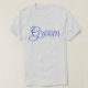 T-shirt classique de base de couleur gris clair cendré imprimé avec le texte "Groom" en typographie de lettres de couleur bleu royal et design graphique numérique par TheFabricSeal, impression à la demande sur Zazzle.com #ZazzleMade https://www.zazzle.com/store/thefabricseal TheFabricSeal©️Original.