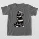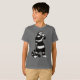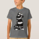 T-shirt chaton Spooky avec un dessin à l'encre représentant un chaton rayé noir et blanc étrange avec un long cou tenant un masque de crâne. Il semble qu'un de ses gants est sorti et sa main de squelette apparaît de sa manche. Me fait me demander s'il est beaucoup plus d'une créature effrayante qu'il ne le prétend être à Halloween.