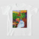T-shirt avec la peinture animalière de Louis Wain Maître de Cat College (1860-1939). Un chat blanc réfléchi aux yeux bleus saisissants se tient à côté d'un assortiment vibrant de belles fleurs. Le majestueux collège de chats se dresse dans l'arrière - plan sous un ciel rose et bleu. Un cadeau merveilleux pour l'art amoureux des chats et anglais.