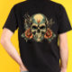 Un crâne audacieux et électrisant imprégné d'esthétique vintage et grossière. Cette oeuvre présente des effets de pépin, des couleurs vibrantes et des textures abstraites, créant une atmosphère raide et rebelle. Parfait pour ceux qui aiment l'alternative