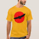 Un noir, condor montant devant un soleil orange sur un T-shirt jaune.