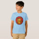 Un T-shirt avec un chat de dessin animé sur un cercle rouge. Un chaton joyeux, un joyeux gardien de jour.